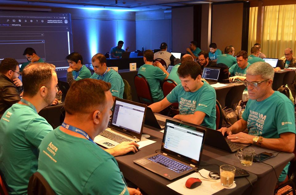 A hands-on workshop focusing on cloud resource best practices. Receiving participants from all over Brazil. In the first class of the Azure Track, several topics were addressed, including: Networks, Gateways, Balancing, VPNs, Firewalls, Pairing, AD, Security, Recovery Services, Migrations, Routing, VMs, and more. Receiving Jackson Martins as Guest Specialist for the practical labs.