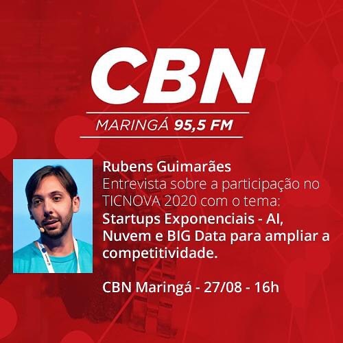 Check out Rubens Guimarães’ interview for CBN Maringá talking about modern technologies in Cloud, BIG Data and Artificial Intelligence focused on the market. The chat, which was broadcast in real time on Youtube, Radio, Facebook and other channels, took place before Rubens Guimarães’ lecture at TIC NOVA, one of the biggest Innovation events in Brazil.