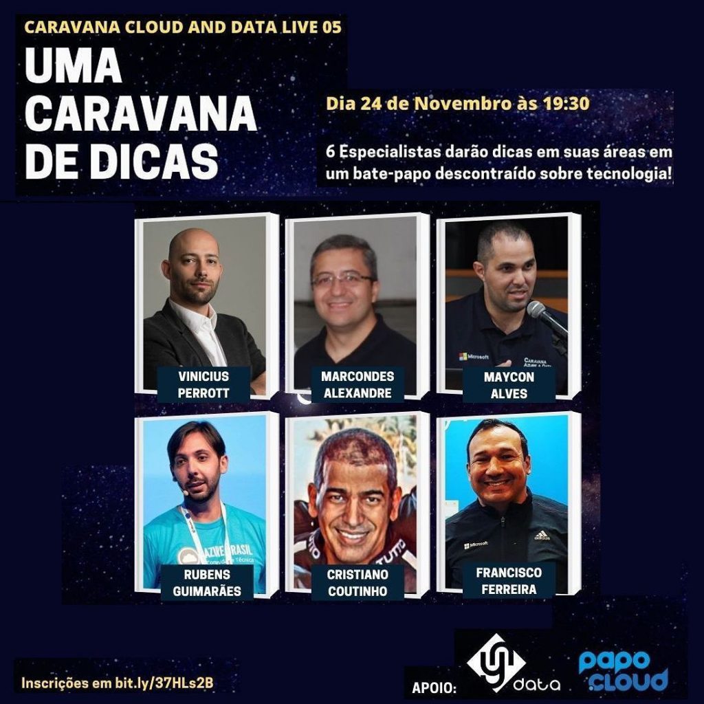 Um encontro de profissionais de tecnologia da informação: MVPs da Microsoft, MTACs, desenvolvedores, analistas, analistas de banco de dados e demais interessados em informática para a demonstração de algumas funcionalidades da plataforma de nuvem dos maiores fabricantes do mercado, e de que maneira elas podem ser implementadas em sua organização utilizando serviços em nuvem, revolucionando as empresas construindo soluções que fomentem a transformação digital. Se deseja fazer parte desta caravana no facebook, acesse: #CaravanaCloudAndData