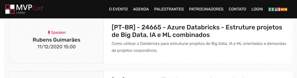 [PT-BR] – 24665 – Azure Databricks – Estruture projetos de Big Data, IA e ML combinados está agendada para 11/12/2020 15:00.