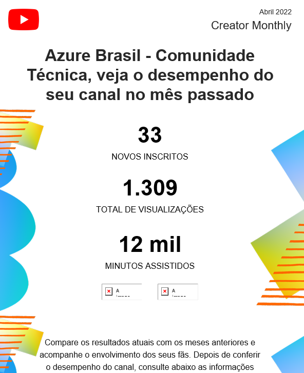 Engajamento do canal Youtube Azure Brasil no mês de Abril de 2022.