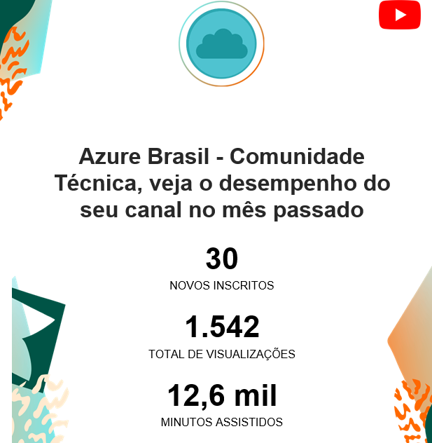 No mês de Junho de 2022, foram mais de 1542 visualizações no canal Azure Brasil. Conteúdo de qualidade acessível à comunidade técnica.