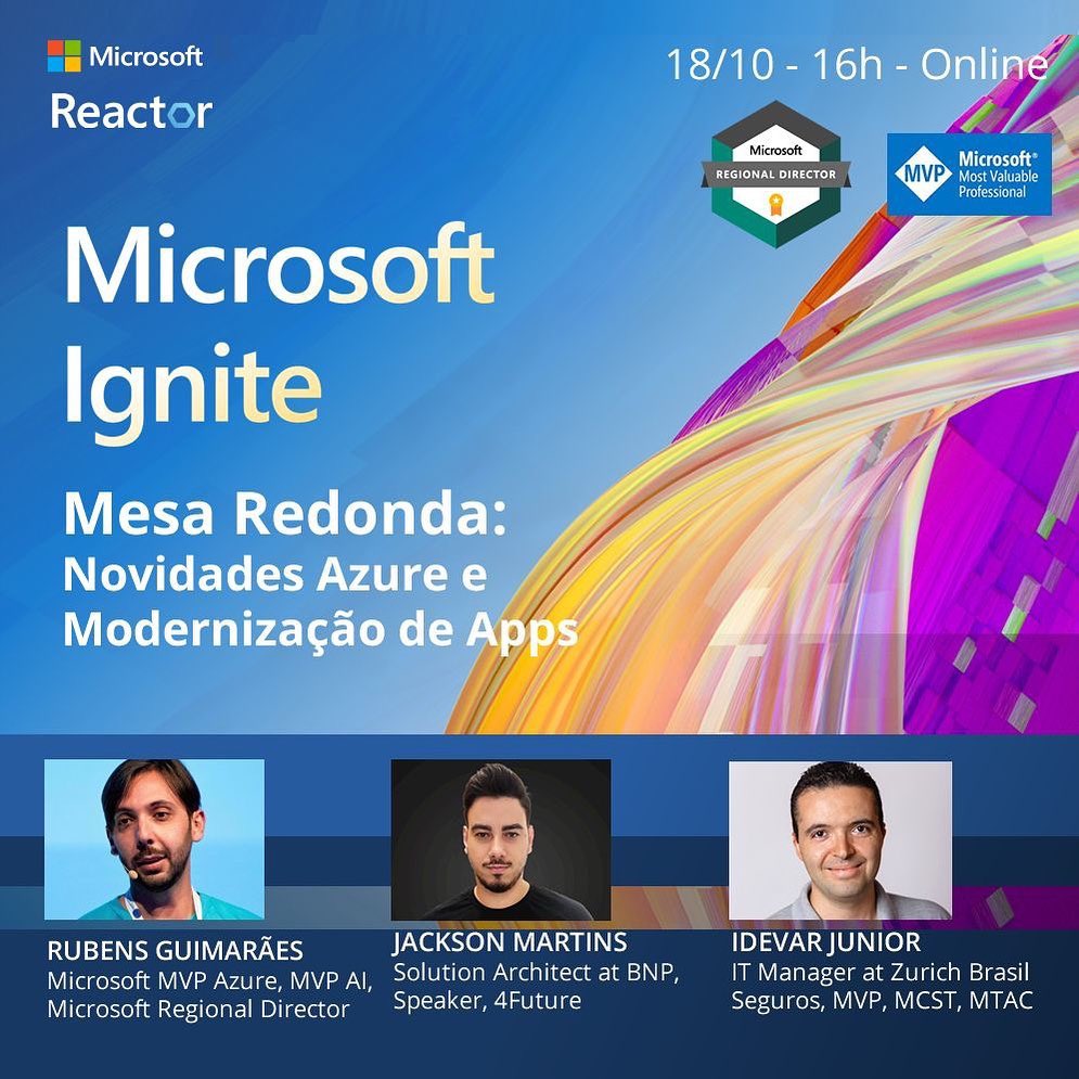 At the invitation of Microsoft Redmond, I organized and participated as Host / Speaker of the Microsoft Ignite After Party – Roundtable: What’s New in Azure and App Modernization. The online event was broadcast on 02 YouTube channels: Microsoft Reactor and Azure Brazil, expanding access to content and general news about Application Modernization in Azure.