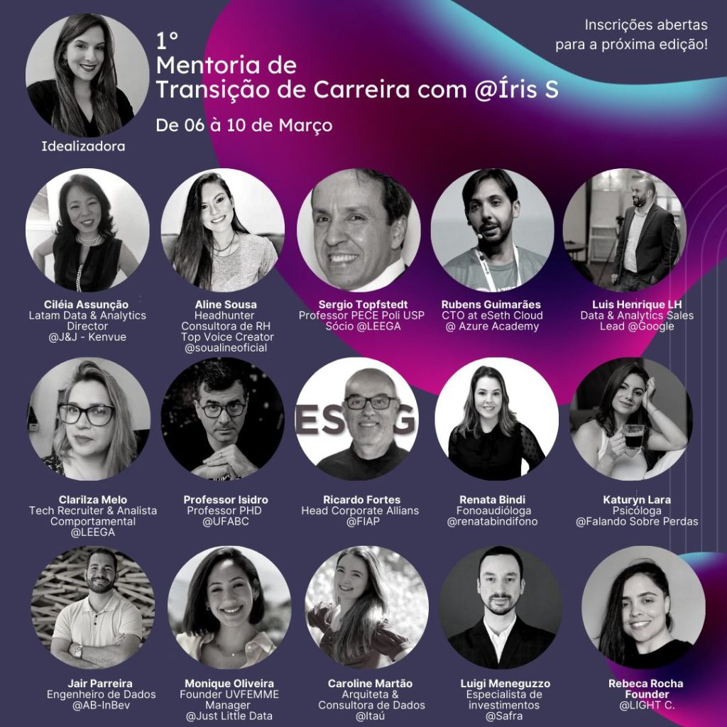 Rubens Guimarães invited to give a lecture on Data Engineering in Azure at the career transition event organized by Iris Sachimoto for Nestlé professionals.