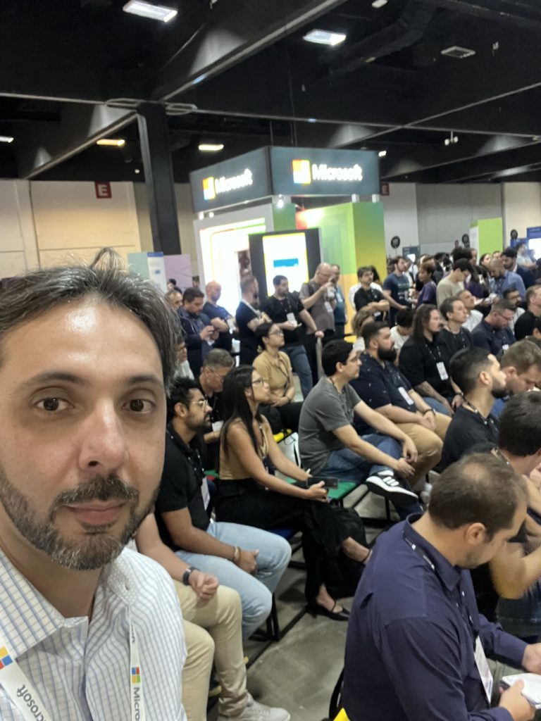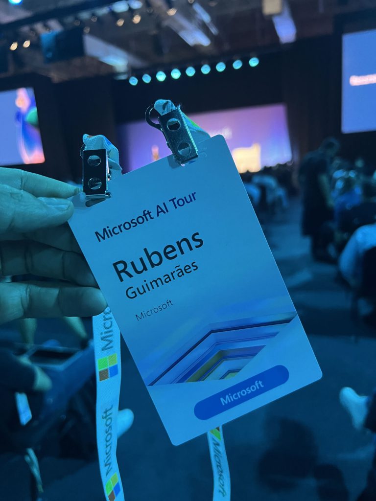 Rubens Guimarães participating in the Microsoft AI Tour São Paulo as a guest of Microsoft at the Expert Lounge, Workshop Speaker Support and Developers Lounge Reactor! 6000 registrants, several languages, seeing many friends and of course: an event with a lot of innovation!