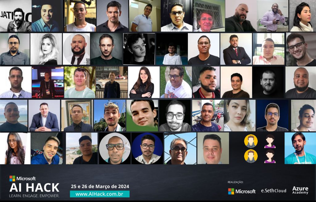 Microsoft AI Hack! Um desafio com propósito de mudar o mundo para melhor através de AI Services. Foram 02 dias de atividades de inovação e conhecimento, além de desafios de cases reais propostos para equipes dispostas a criar soluções para problemas empresariais e da sociedade. Uma jornada de igualdade, inclusão, acessibilidade, colaboração e muito hands-on em tecnologias modernas com OCR, detecção facial, machine learning, IA Generativa, OpenAI, No-code, Visão computacional e mais. Uma incrível Jornada preparada para a comunidade. www.aihack.com.br.