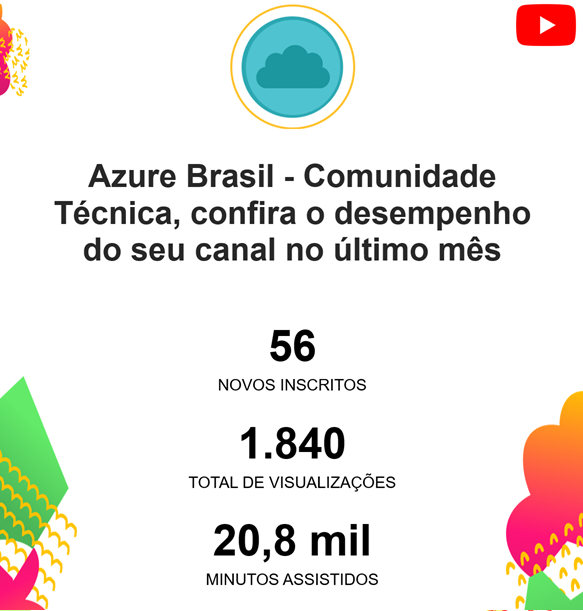 No mês foram mais de 1840 visualizações no canal Azure Brasil. A comunidade técnica, liderada por Rubens Guimarães é referenciada pelos pilares de igualdade, engajamento e participação de profissionais de diversos países. A comunidade continua crescendo e disponibilizando vídeos acessível e gratuitos gerando mais conhecimento para todos.