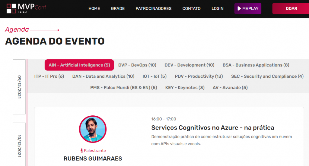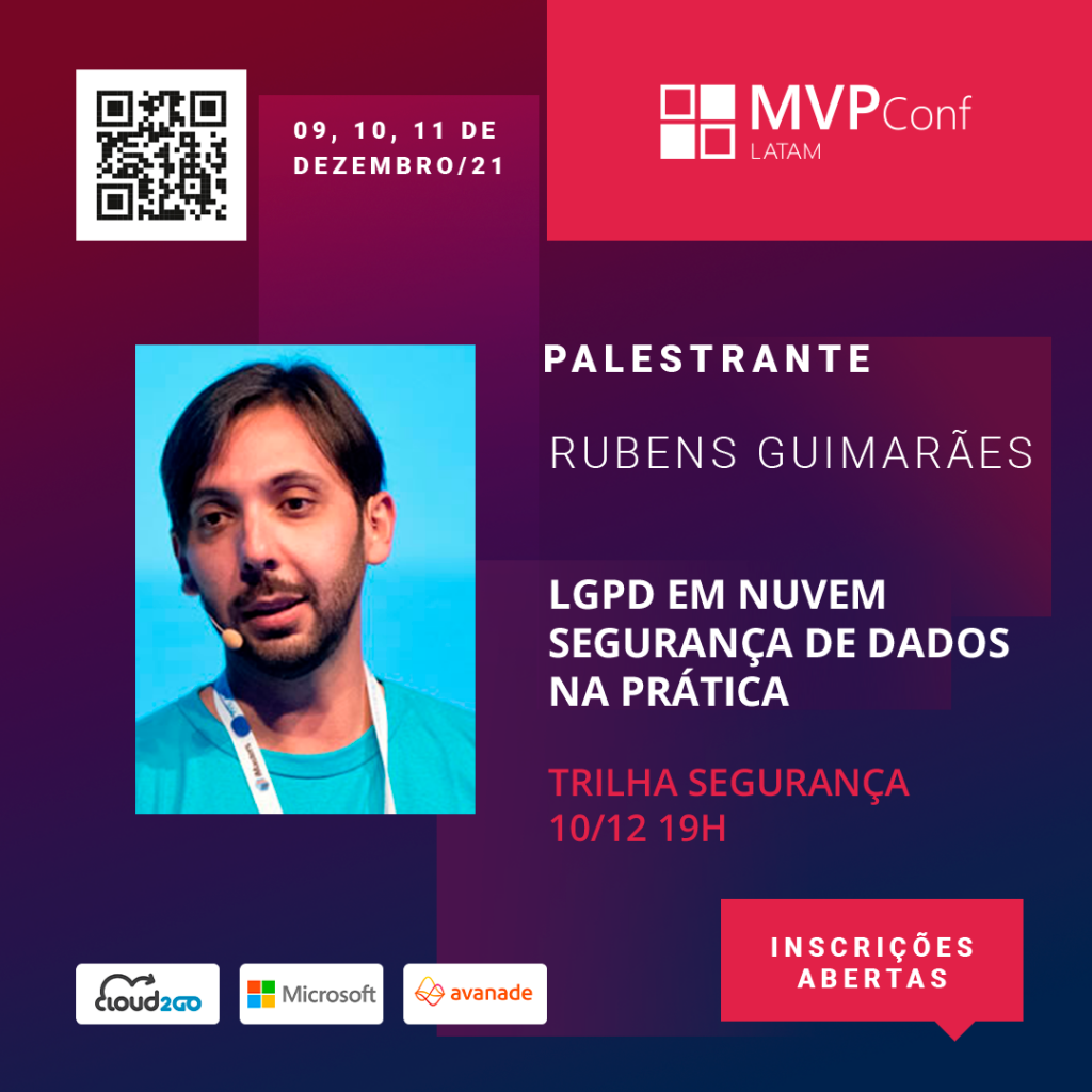Rubens Guimarães, invited to give 03 lectures at MVPConf 2021. In this edition, he contributed with the themes: