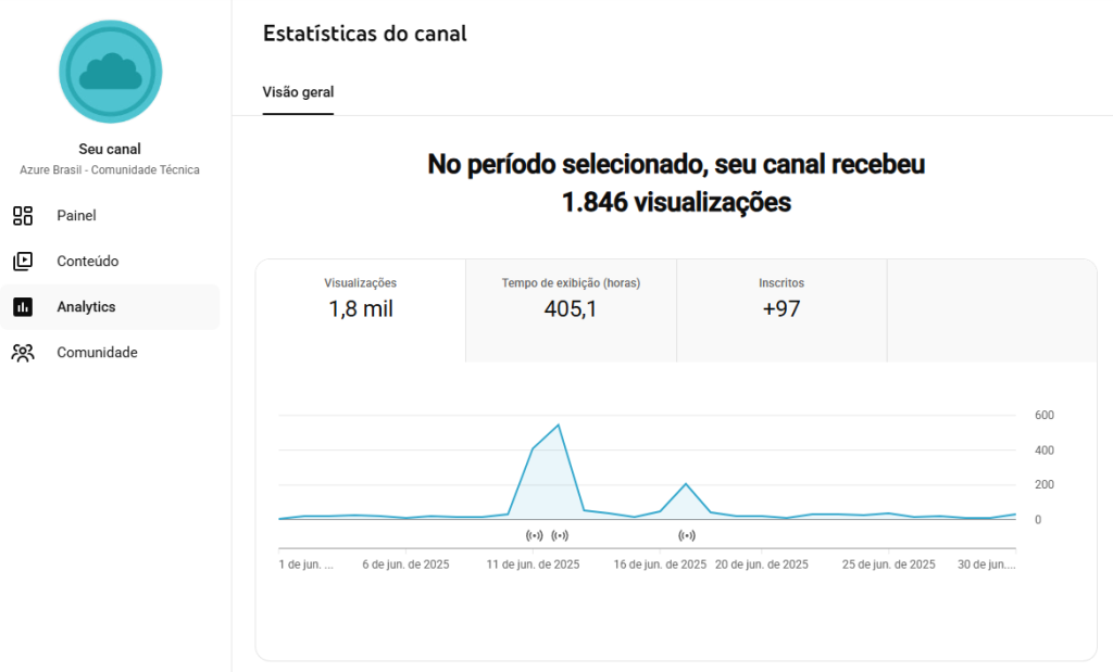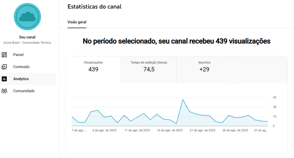Last month, the Azure Brazil channel received over 2286 views. The technical community, led by Rubens Guimarães, is known for its pillars of equality, engagement, and participation of professionals from various countries. The community continues to grow and provide accessible and free videos, generating more knowledge for everyone.